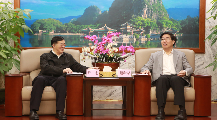 4月13日上午,廣晟公司董事長、黨委書記許光和廣晟公司總經理、黨委副書記陳勝光一行赴肇慶,與肇慶市委書記、市人大常委會主任賴澤華,市委副書記、市長陳旭東等交流洽談。雙方就加強合作、共謀發展進行了深入溝通交流。