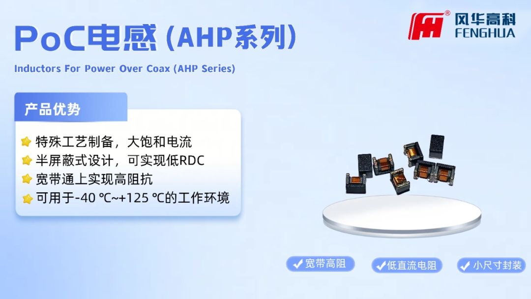 AHP系列車載PoC電感:針對智能駕駛信號傳輸痛點,采用半屏蔽結構設計,搭配風華自研Bias-T測試平臺,能為車載攝像頭模組、智駕域控單元提供“電源+信號”同步傳輸方案,保障信號傳輸高效穩定。