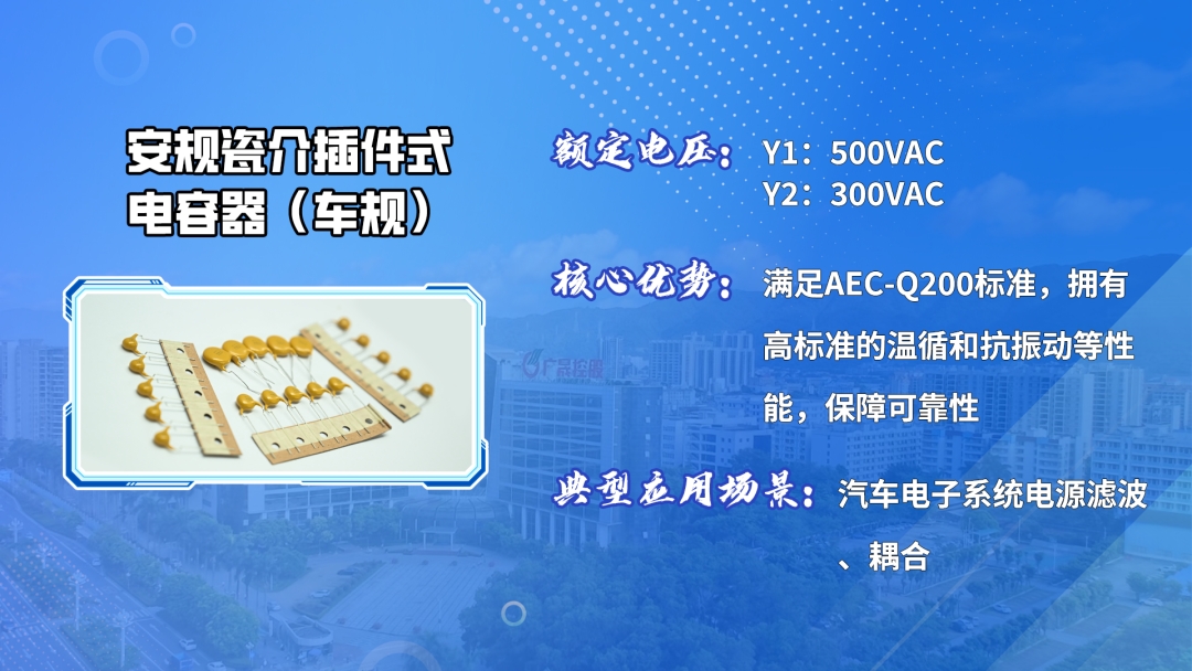 車規瓷介電容器:產品采用銅電極芯片,能有效規避汽車燃油蒸汽、濕氣等引發的銀離子遷移,適用于高溫高濕、高腐蝕、極寒等環境,廣泛應用于汽車充電樁、車載充電器(OBC)、汽車空調等領域。